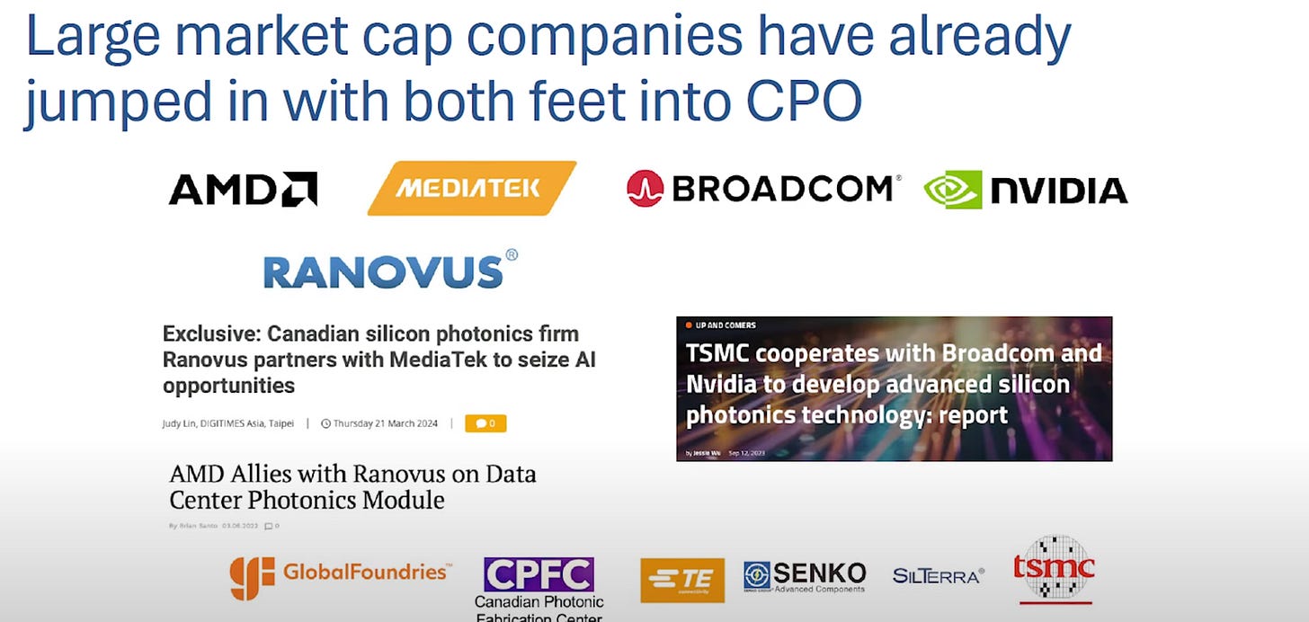 Increasing number of clients are eyeing the latest developments in Co-Packaged Optics (CPO). They see major players announcing substantial investments in CPO as a clear indicator of its potential.