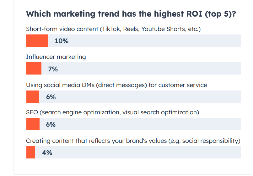 A survey by HubSpot asked over 1,200 B2B and B2C marketers from around the world in various industries about what works best in marketing. The survey found that short videos give businesses the most ROI.