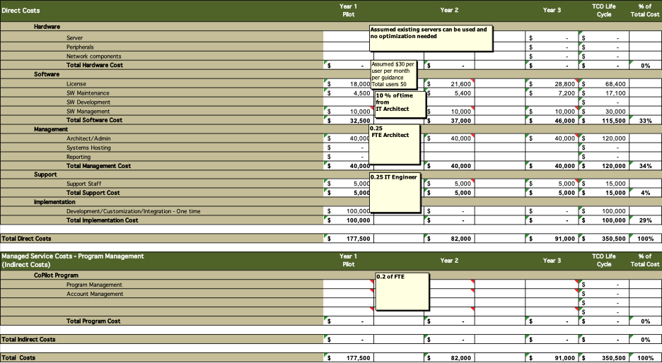 Let's break down the some factors of Total Cost of Ownership (TCO) for Microsoft 365 CoPilot:
