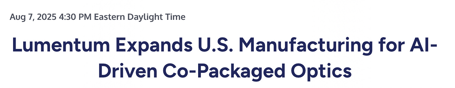 Lumentum had already begun expanding U.S. manufacturing for CPO‑relevant laser capacity, and NVIDIA’s investment reads less like a sudden pivot than a deliberate sequence: supplier builds the capacity roadmap → NVIDIA finances and reserves it as CPO ramps.