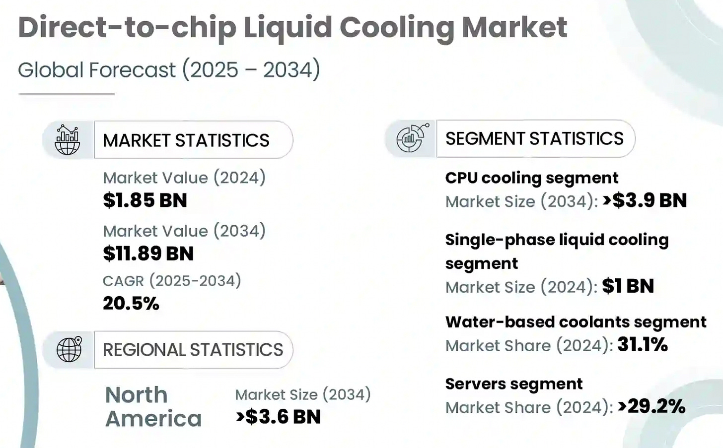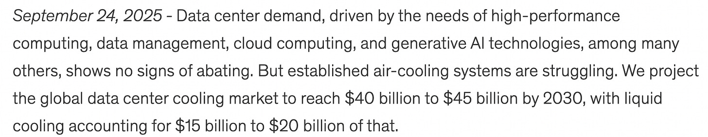 Per McKinsey, $15-$20 billion in liquid cooling by 2030.