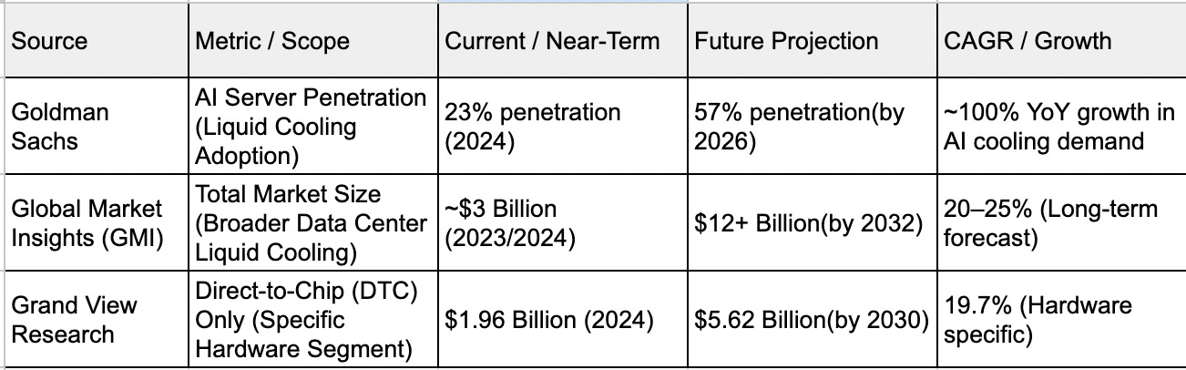 According to Goldman Sachs, the penetration of liquid cooling in AI servers is projected to more than double in just two years, jumping from 23% in 2024 to 57% by 2026.