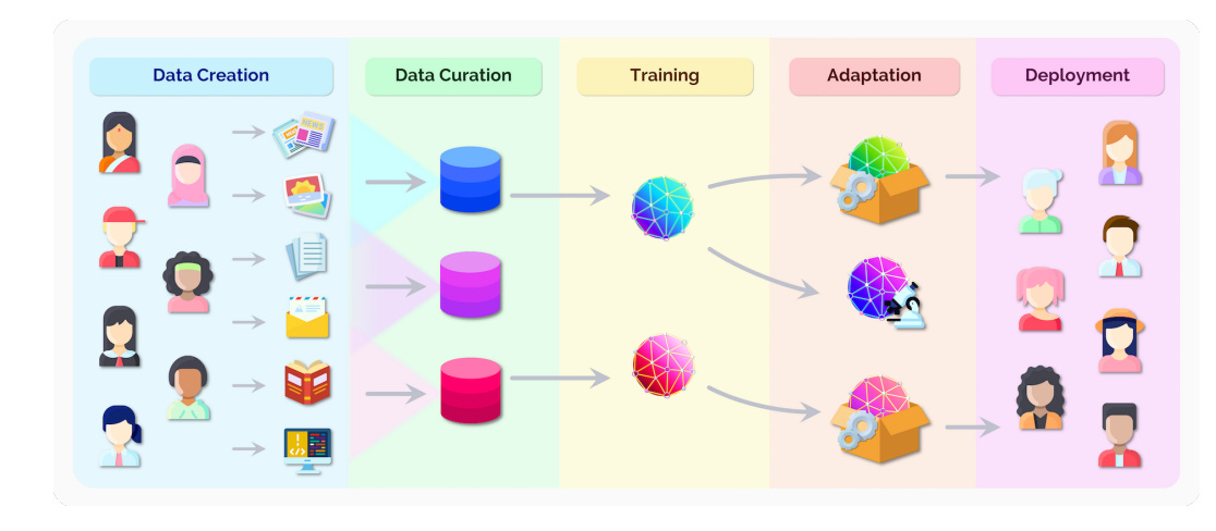 As depicted below, the journey of training an LLM initiates with user data, encapsulating a spectrum of emotions and reviews at its core. On both end of this spectrum lie individuals, whose interactions and expressions fuel the LLM's learning process.